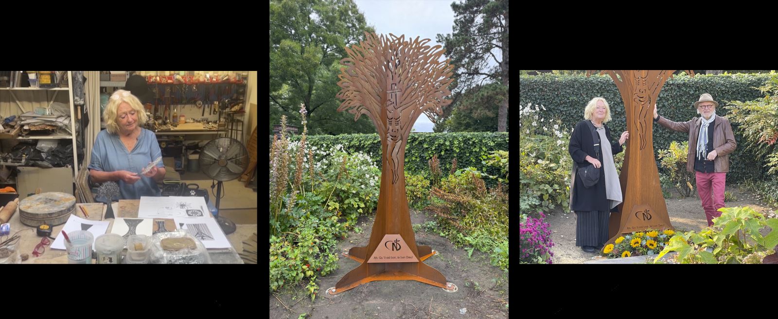 Beeldengroep "Stairway to heaven", nieuw vormgegeven na diefstal. Glas en ijzer.