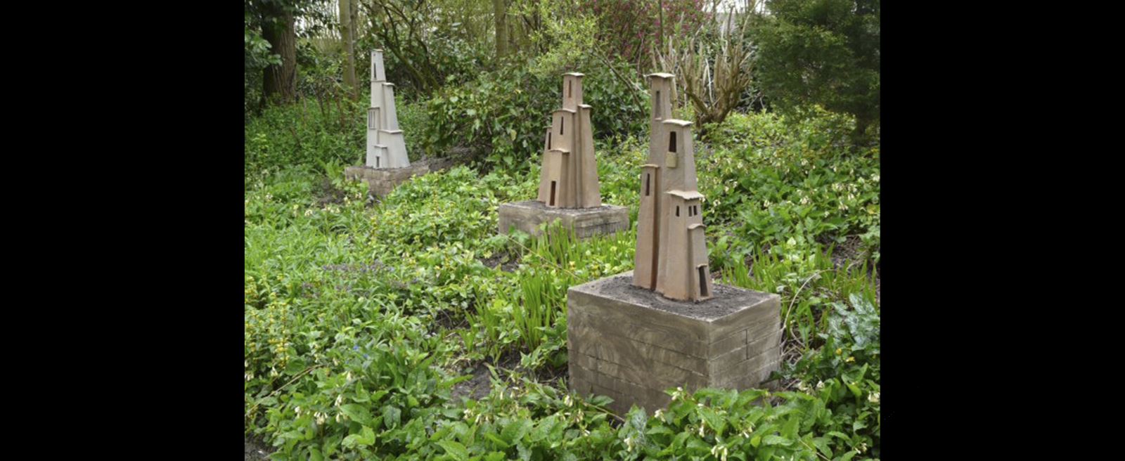 Beeldengroep "Stairway to heaven", nieuw vormgegeven na diefstal. Glas en ijzer.